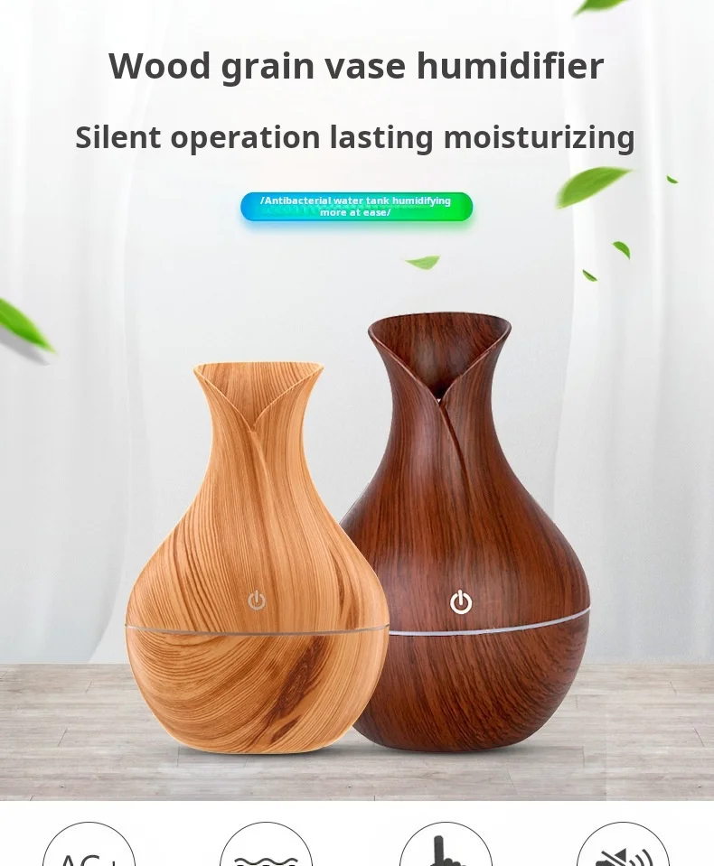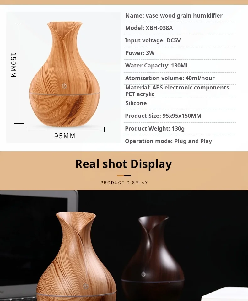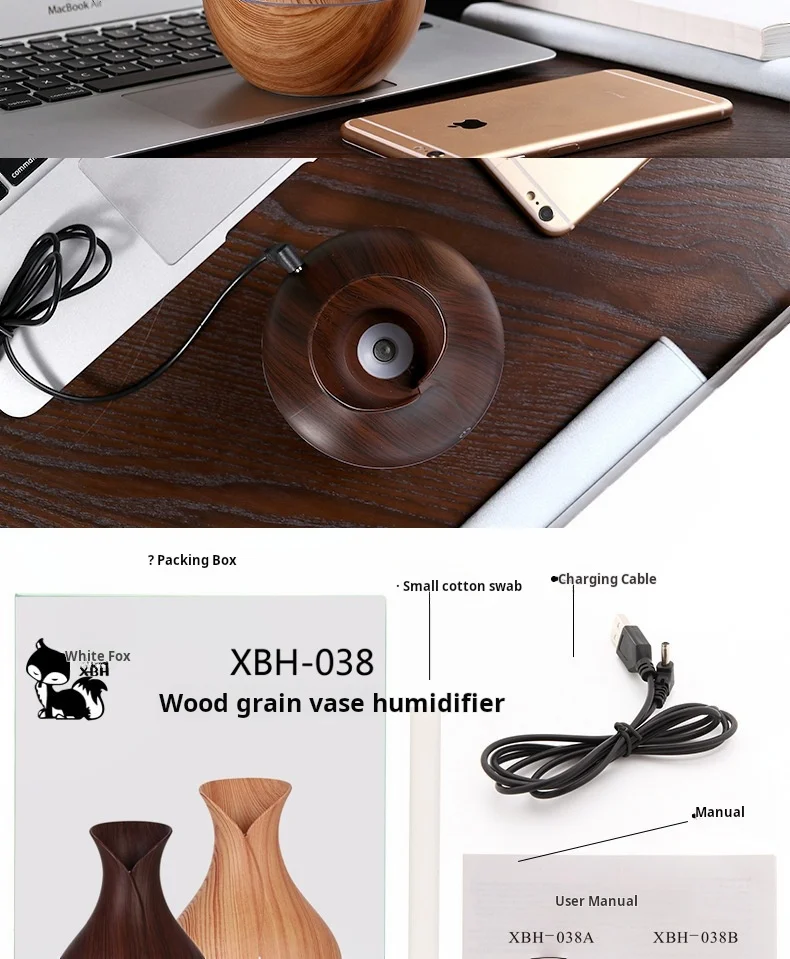 The device features a stylish wood grain design, adding a touch of elegance to any desktop or office space.